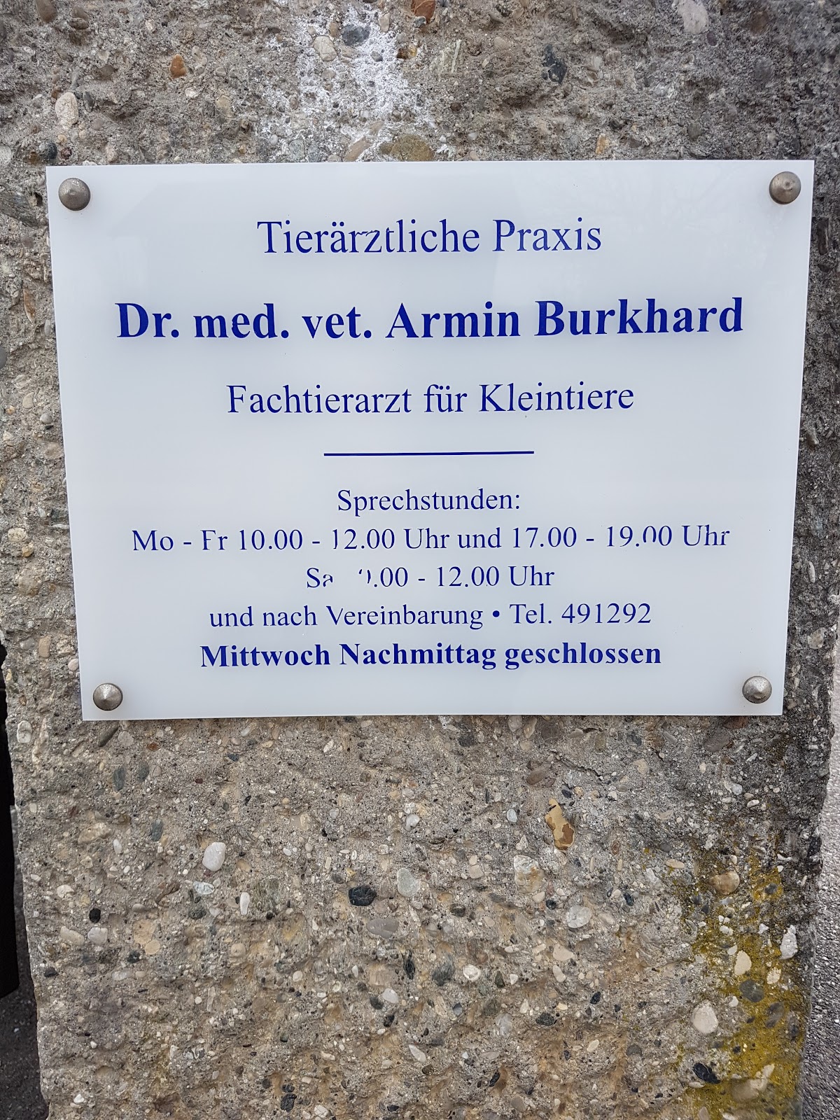 Momentan ist nur 1 Person mit Haustier erlaubt.Unbedingt Termin vereinbaren!Hr. Dr. Burkhardt ist sehr sehr freundlich und mitfühlend!Die Preise sind für eine Tierarztpraxis sehr passabel!