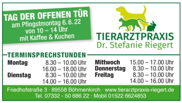 Frau Dr. Riegert kann ich nur empfehlen. Sie nimmt sich sehr viel Zeit für Mensch und Tier. Sie strahlt eine richtige Ruhe aus. Unser Joschi geht sogar von sich aus rein. Sehr, sehr gute Tierärztin.