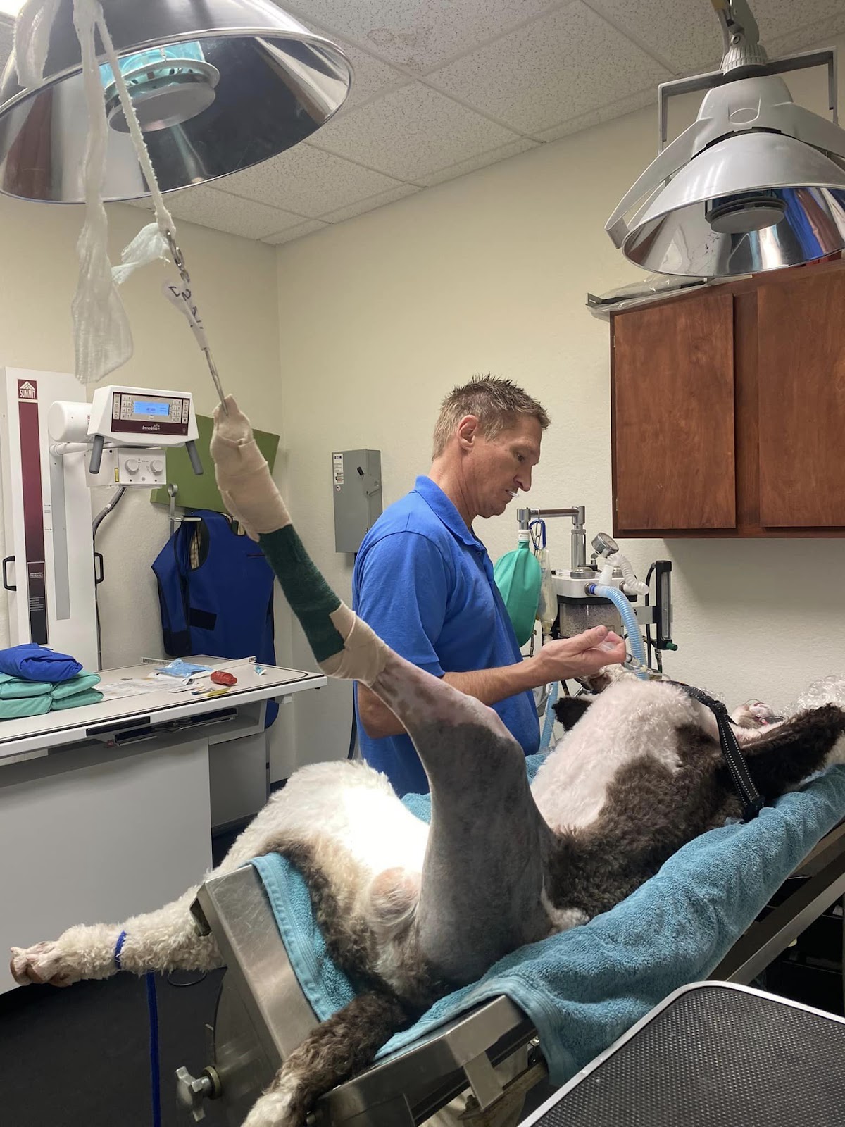 Wir können Dr. Stramel und seine Mitarbeiter nicht genug loben!! Wir haben sie letztes Jahr gefunden, als sich unser Golden Retriever das Band im linken Bein verletzte. Dr. Stramel äußerte sich offen, sachlich und ehrlich zu unseren Möglichkeiten. Er hat uns nie zu einer Entscheidung gedrängt und immer respektiert, was wir beschlossen haben. Charlie unterzog sich schließlich im November einer TPLO-Operation. Ich war ein nervöses Wrack, seit ich Horrorgeschichten über den Genesungsprozess gehört hatte. Wir waren absolut überwältigt davon, wie reibungslos Charlies Genesung verlief, und das ist alles ein Verdienst von Dr. Stramel!! Er ist ein Experte auf diesem Gebiet und wusste genau, wie er Charlies Genesung maximieren konnte. Charlie hat heute seinen Abschluss in der Physiotherapie gemacht und als wir das Gebäude verließen, hatten wir Tränen in den Augen. Dr. Stramel und sein unglaubliches Team haben unserem Jungen sein verspieltes Leben zurückgegeben und wir sind ihm für immer dankbar.