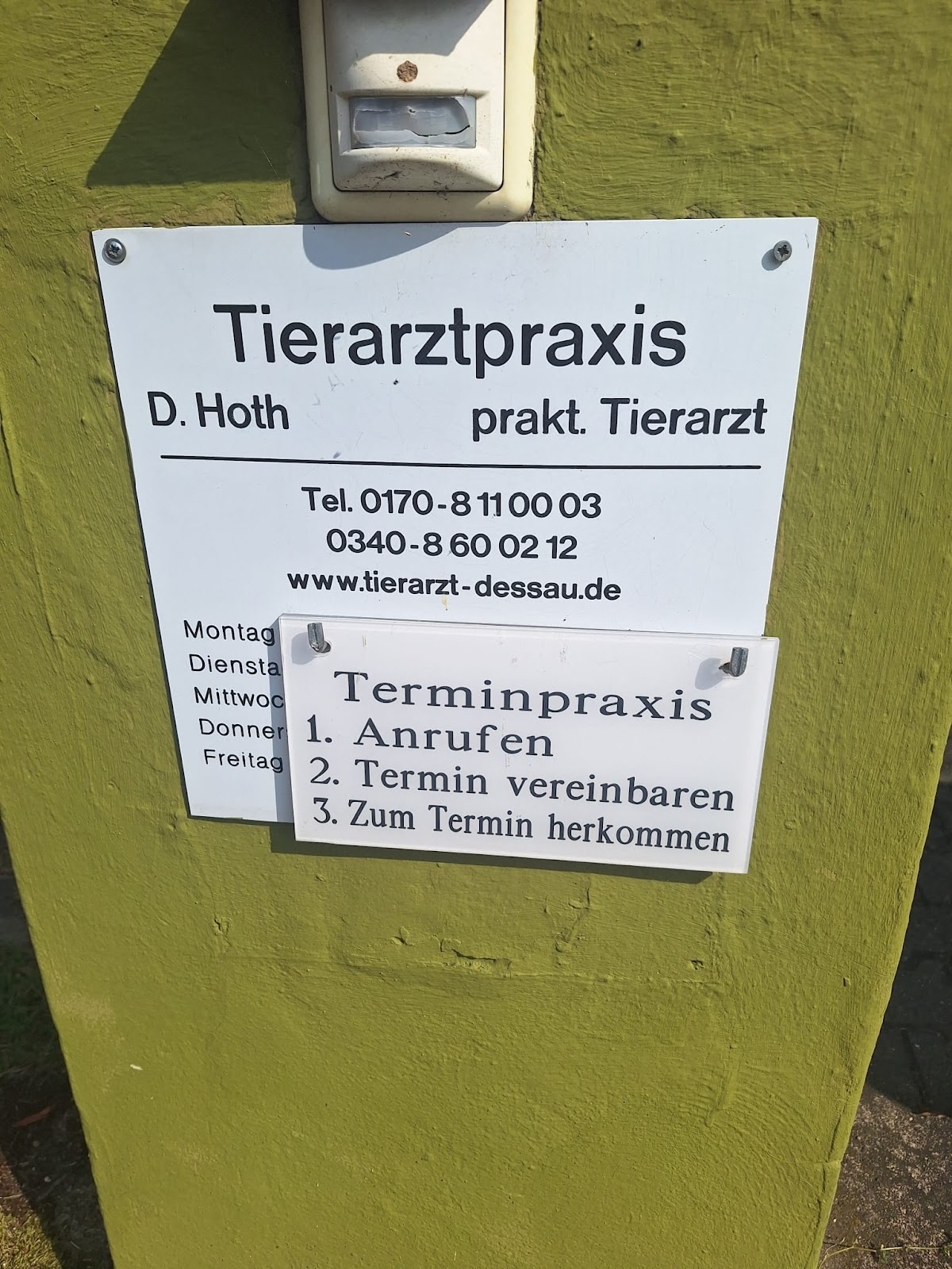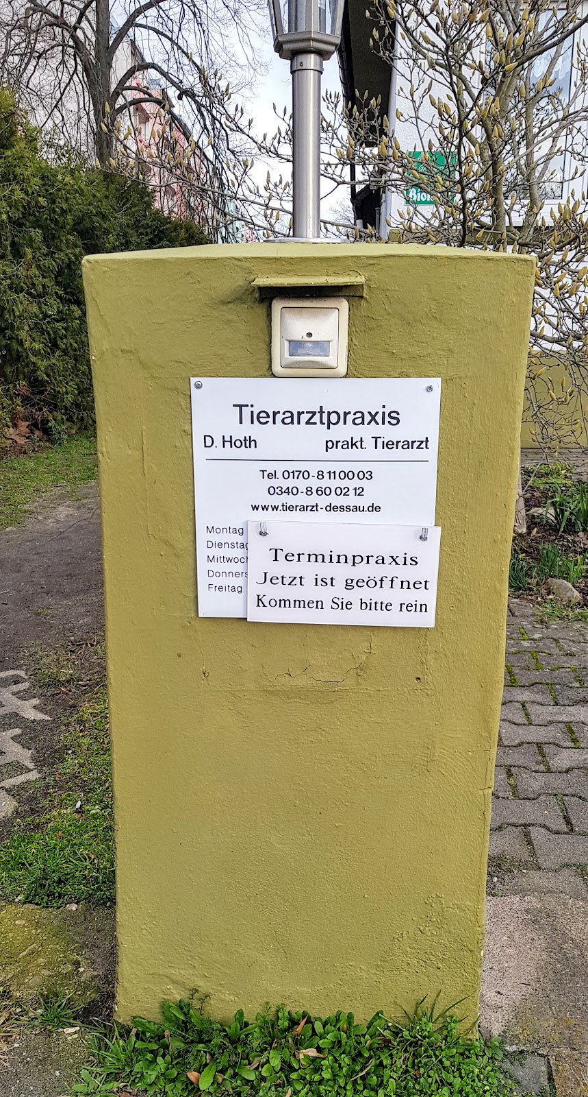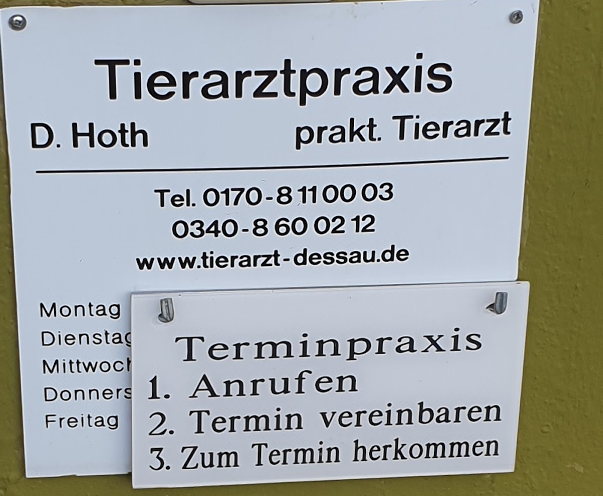 Dr. Hoth hatte offiziell Notdienst. Habe vorab angerufen, Öffnungszeiten genannt bekommen und auch noch einmal die Adresse mit Hinweis zur Anfahrt.