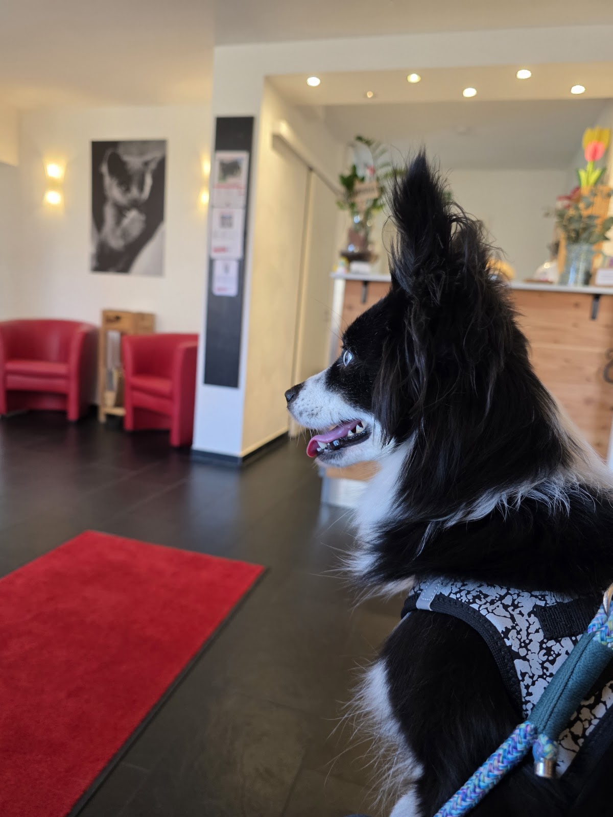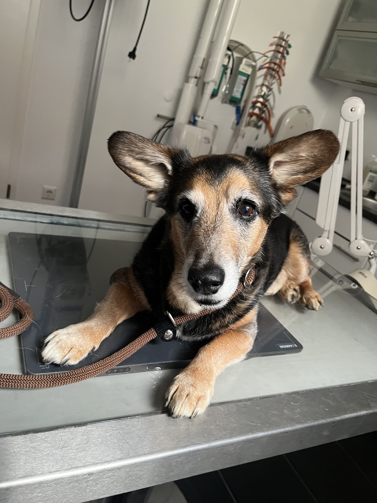 Hallo, i bims der Moppel… ich find euch zwar nicht so brüller, also wenn ihr irgendwas von mir wollt, außer Leckerchen verteilen. Aber Mama sagt immer, dass sie gerade jetzt sehr froh ist, über solch eine tolle Tierarztpraxis. Nicht nur der Chef ist immer witzig und dennoch absolut kompetent sondern auch die tierärztlichen Kollegen*innen und die Mädels und Jungs mit den Leckerchen natürlich, die sind die besten. Alle sind immer sehr einfühlsam zu mir, weil ich ein verdammt großer Schisser bin. Der Chef ist zwischen durch sogar plötzlich nur noch so groß wie ich und hockt neben mir auf dem Boden… sehr sympathisch. Aber dennoch bin ich froh wenn ich bald wieder rundum fit und fröhlich bin, dank der Praxis, um nicht mehr hin zu müssen 😁.