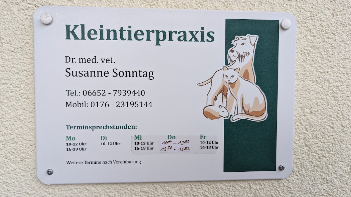 Also ich kann die schlechten Bewertungen wirklich nicht verstehen. Ich bin schon seit Jahren bei Dr. Sonntag und ihrem Team und immernoch sehr zufrieden! Sie gehen sehr liebevoll und einfühlsam mit den Tierchen um und beraten einen auch wirklich gut. Es wird hygienisch gearbeitet und kompetent behandelt. Ein großes Lob an die Praxis!🐶