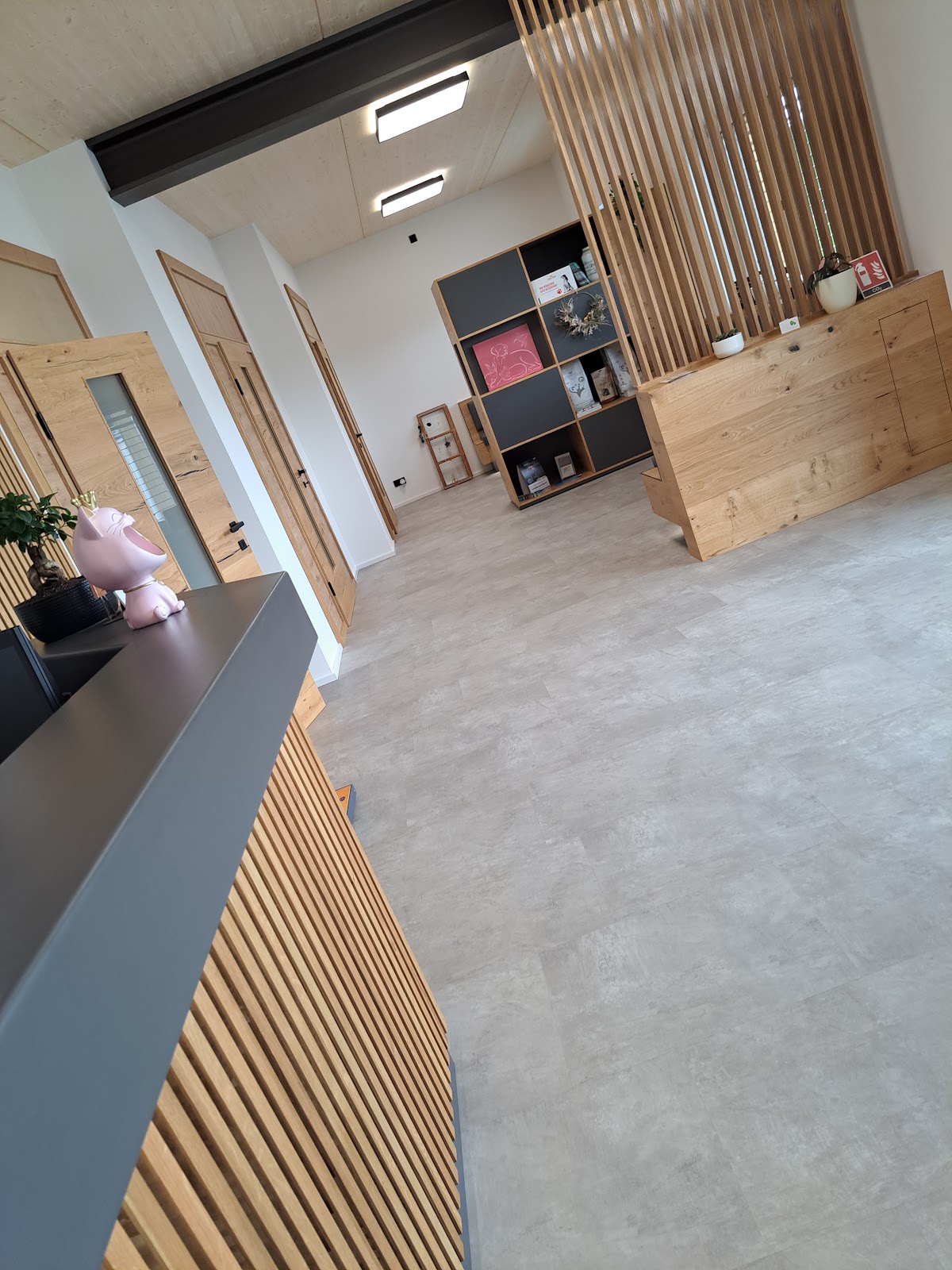 Ganz tolle Praxis, sehr schön gestaltet, viel Holz, rosa Deko auf Tiere abgestimmt. Alles sehr hell, warm und freundlich. Nicht so kalt und steril, wie es oftmals in Praxen aussieht.