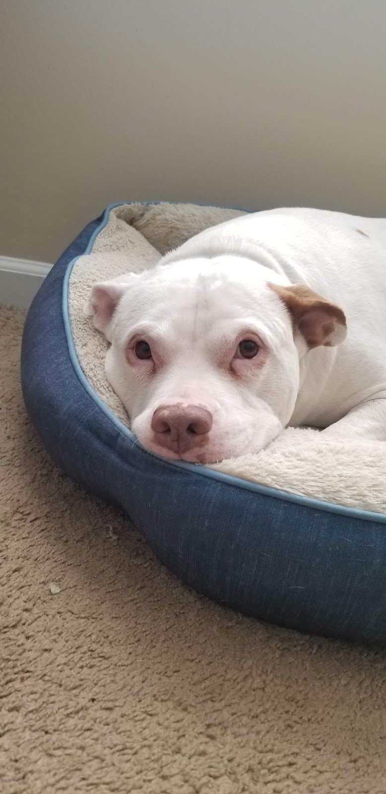 Er war benommen und ruhte sich aus, aber aus Sicht der Hundemutter geht es ihm großartig und er wurde in Beesley gut versorgt.