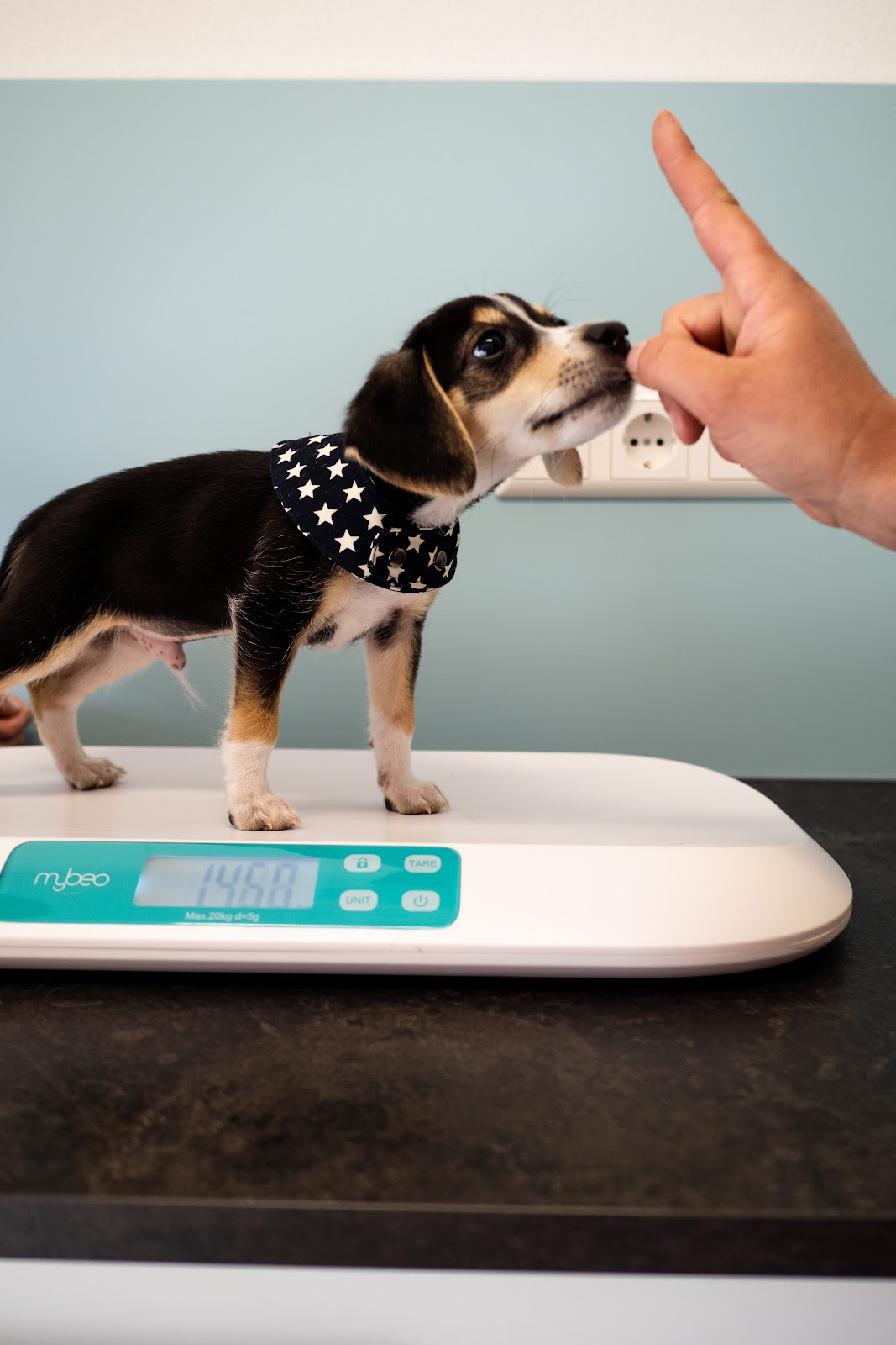 Durch die einfühlsame Art von Tierarzthelferin und Tierarzt kann Arthur mittlerweile ganz entspannt im Warteraum warten. Nach erfolgreicher Behandlung gibt es natürlich immer ein Leckerli. Danke. 🙏🏻