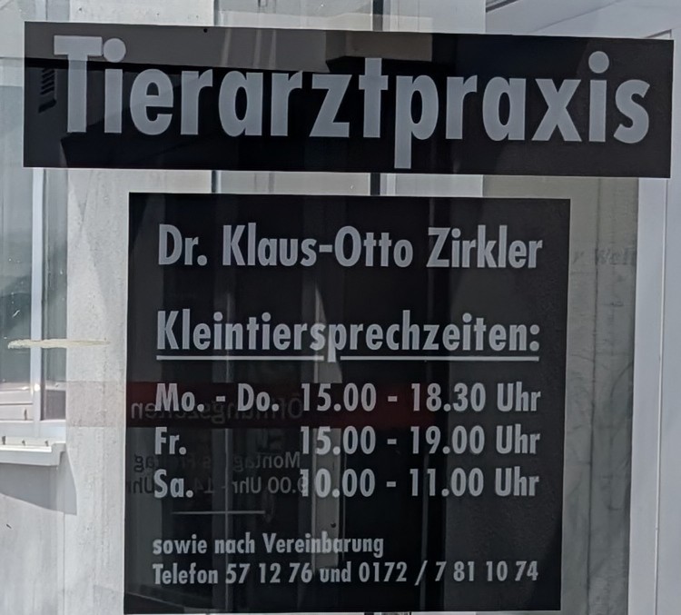 Wir waren mit unserer Lotte während unseres Urlaubs bei Dr. Zirkler. Ein sehr netter und kompetenter Arzt. Seine direkte Art ist toll. Tierärzte wie ihn müsste es viel mehr geben. Vielen Dank.