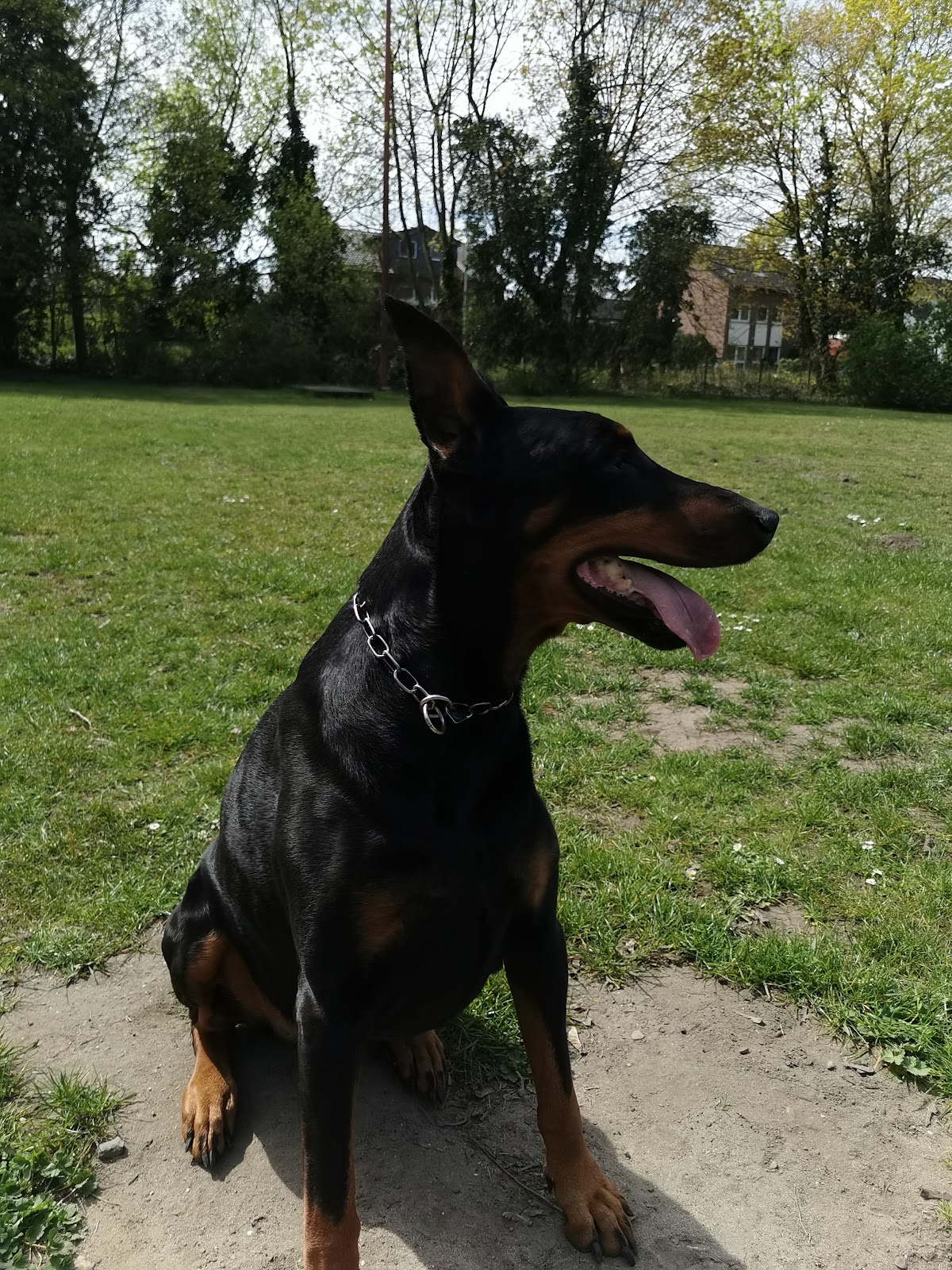 Meine Hündin ist schwanzwedeln raus und zufrieden.
