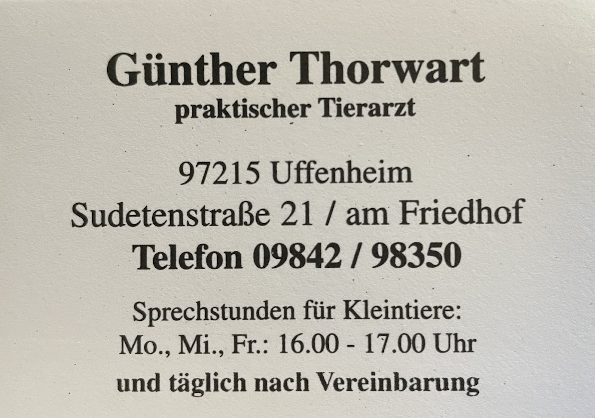 War am Sonntag mit meinem Goldi bei Dr. Thorwart. Eine Behandlung wurde nach meinem Anruf innerhalb kurzer Zeit möglich gemacht was heutzutage gerade am Sonntag alles andere als selbstverständlich ist!! Buddy wurde kompetent behandelt und für meine Sorgen hatte der Arzt fachmännischen Rat. Ich persönlich kann die negativen Kommentare in keinster Weise nachvollziehen im Gegenteil sonntägliche kompetente Versorgung der Tiere und ein offenes Ohr des Arztes noch dazu erschwinglich in heutigen Zeiten ein absoluter Glücksgefühl für Tierbesitzer und deren Tiere