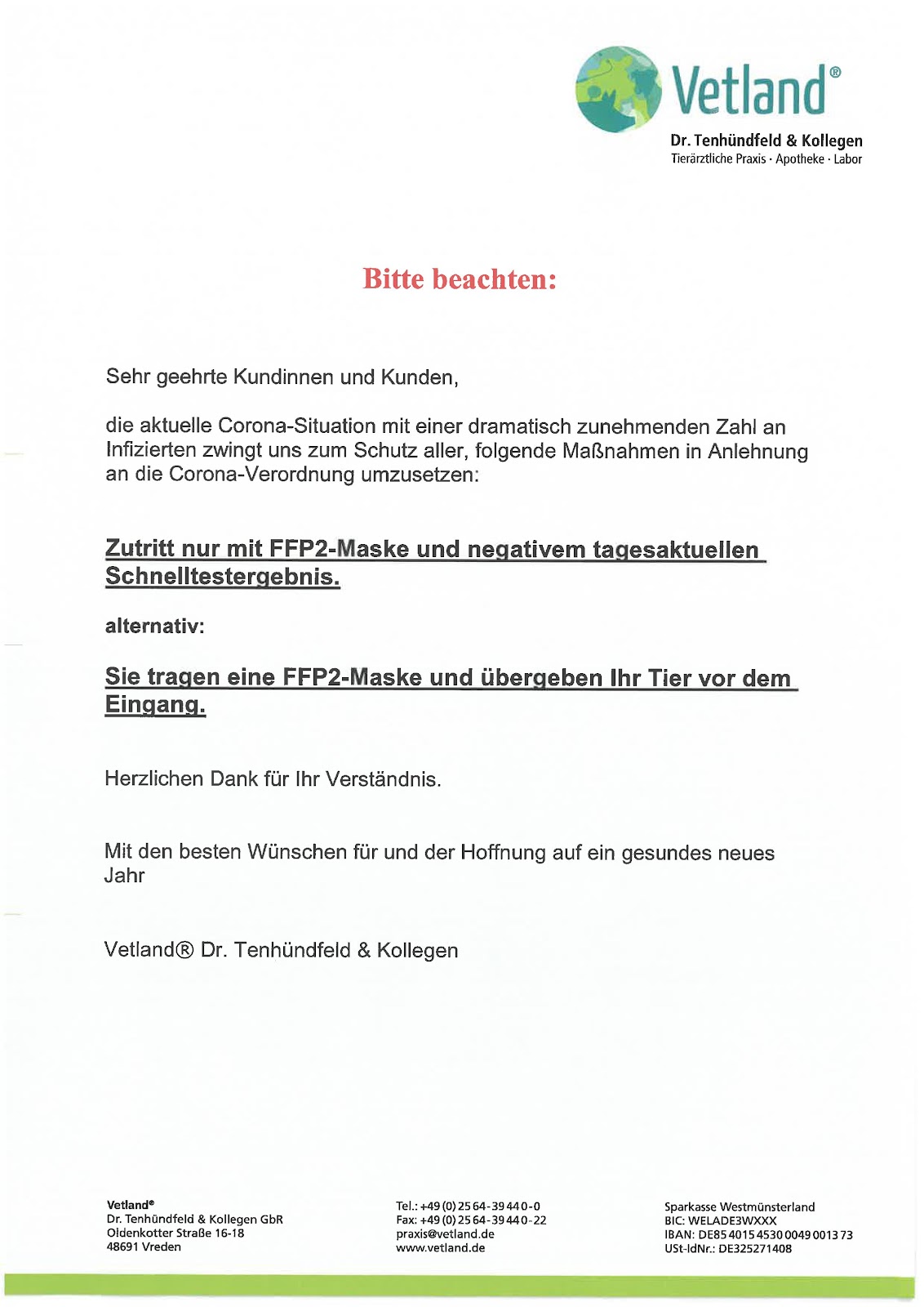 Über Tierarztpraxis Vetland , Dr. Tenhündfeld & Kollegen